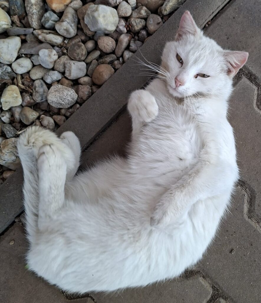V Pohoří směrem na České Meziříčí blízko mostu se pohybuje bílý kocourek. Prozatím ho krmí hodní lidé, ale nemohou si ho nechat kvůli neshodám s jejich kočkami.